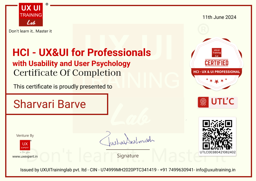 Certificate Issued By : UXUITrainingLab Pvt. Ltd