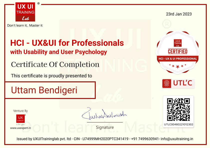 Certificate Issued By : UXUITrainingLab Pvt. Ltd