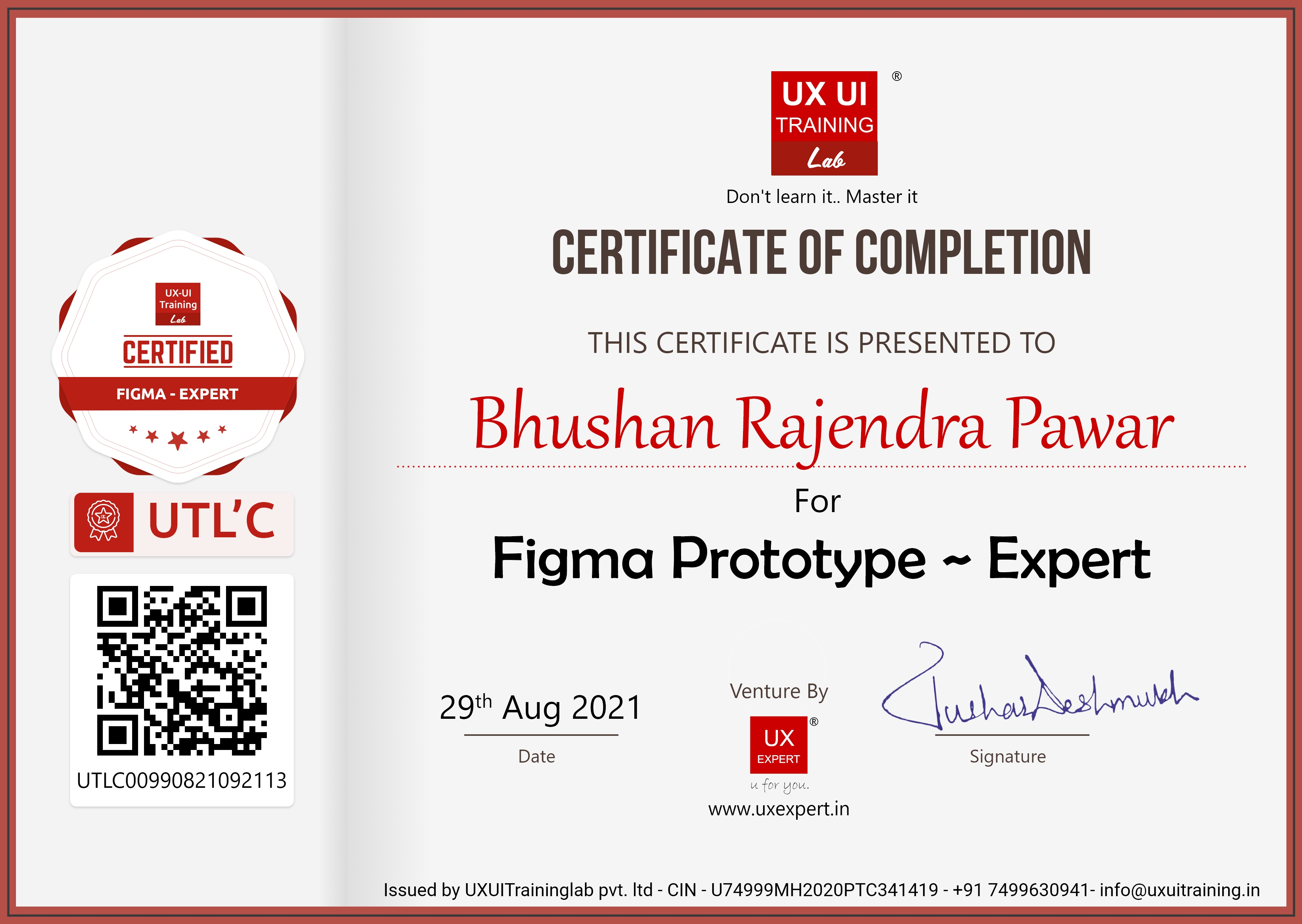 Certificate Issued By : UXUITrainingLab Pvt. Ltd