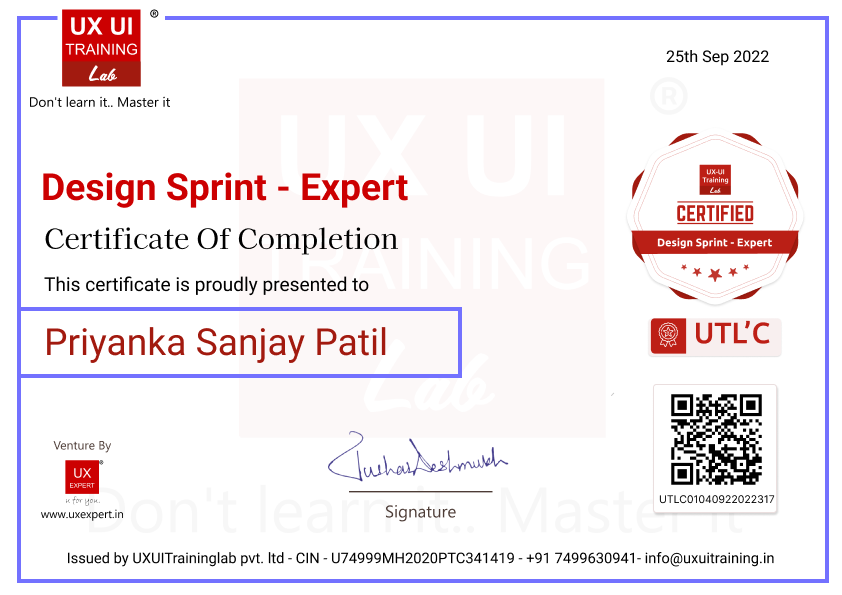 Certificate Issued By : UXUITrainingLab Pvt. Ltd