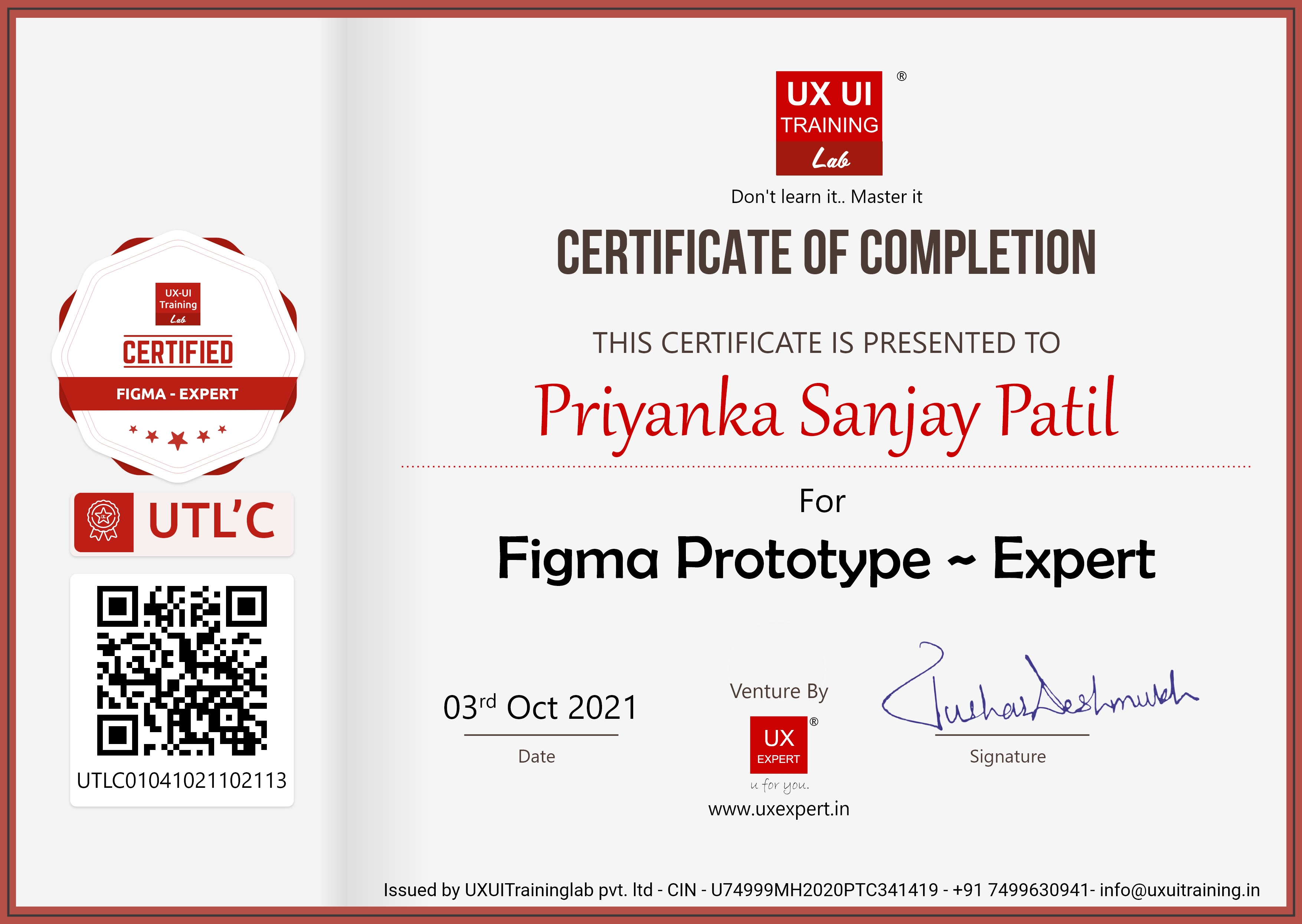 Certificate Issued By : UXUITrainingLab Pvt. Ltd