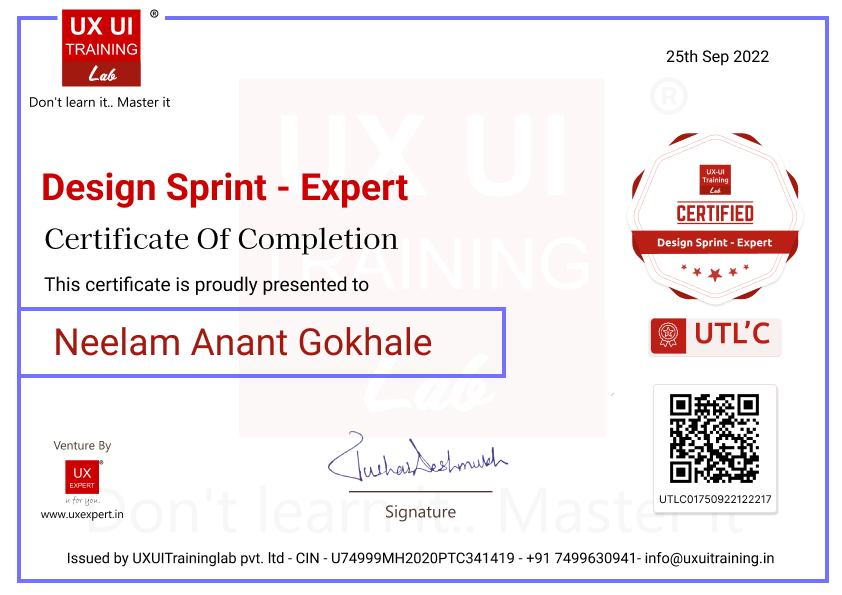 Certificate Issued By : UXUITrainingLab Pvt. Ltd