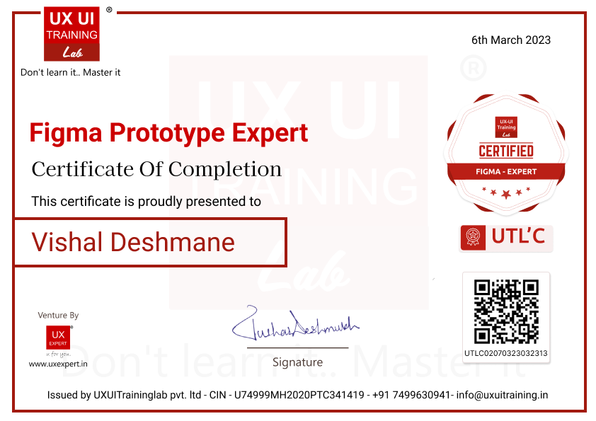 Certificate Issued By : UXUITrainingLab Pvt. Ltd