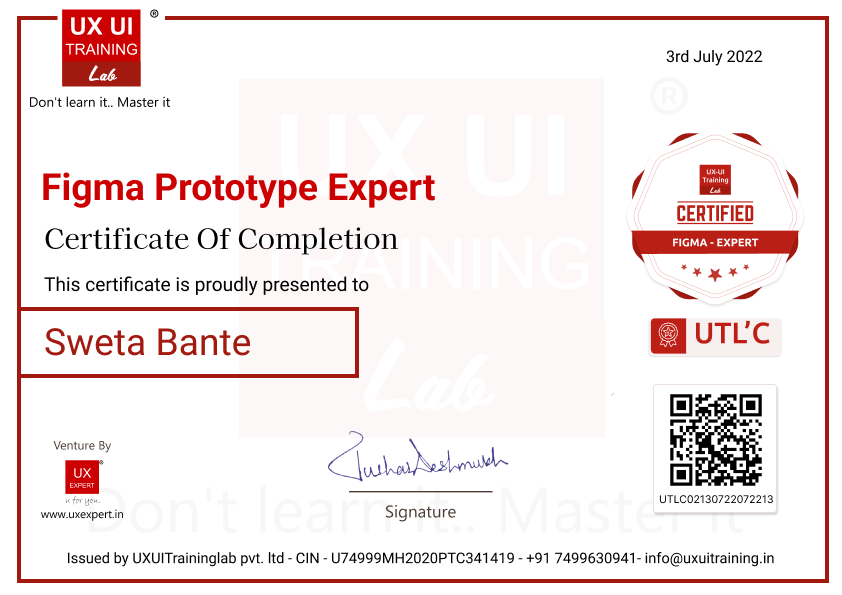 Certificate Issued By : UXUITrainingLab Pvt. Ltd