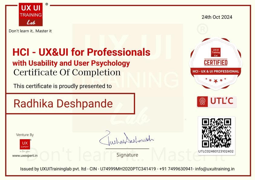 Certificate Issued By : UXUITrainingLab Pvt. Ltd